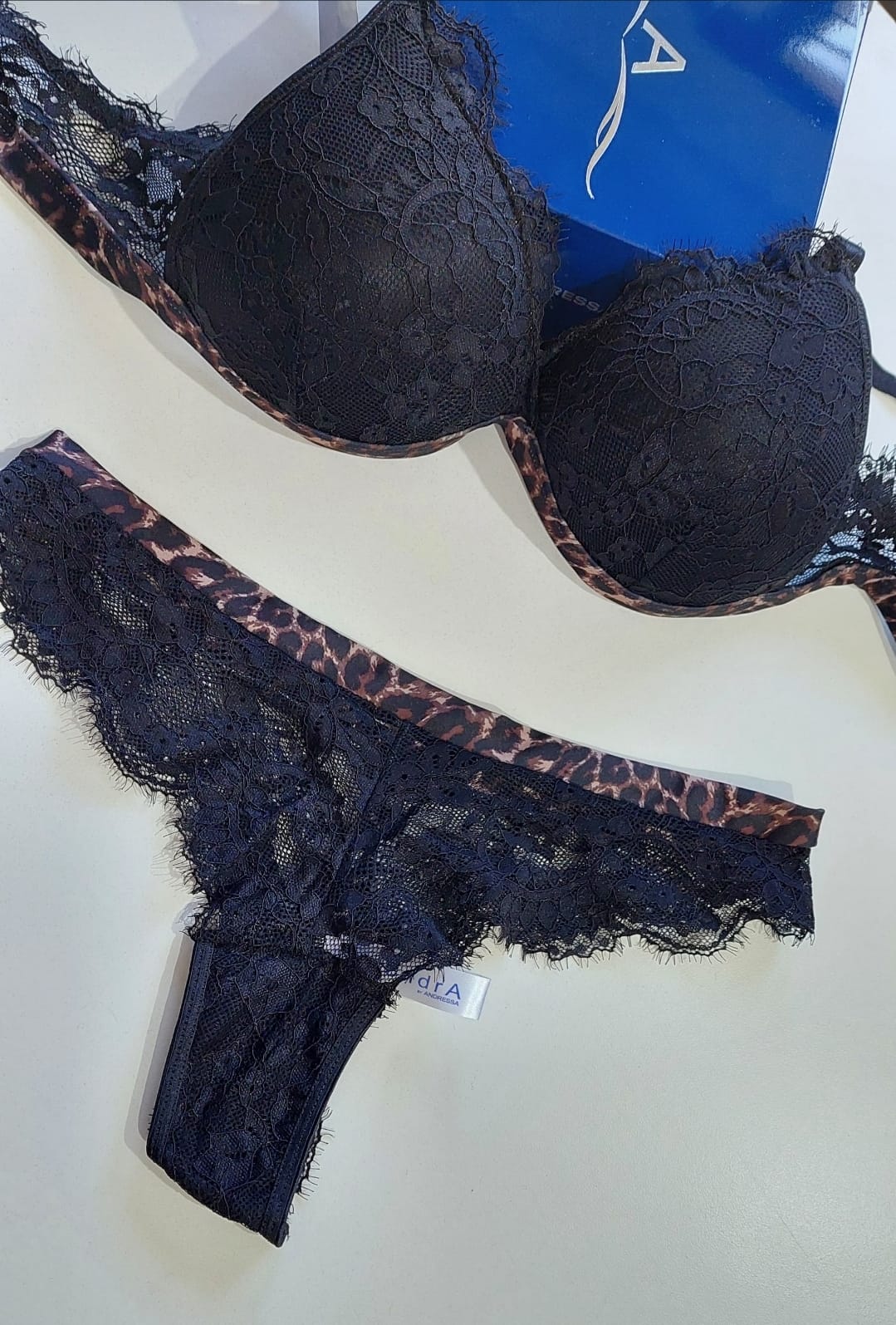 - CONJUNTO TRIÁNGULO SOFT Y CULOTTE LESS DE PUNTILLA CON CINTURA DE MICROFIBRA ESTAMPADA