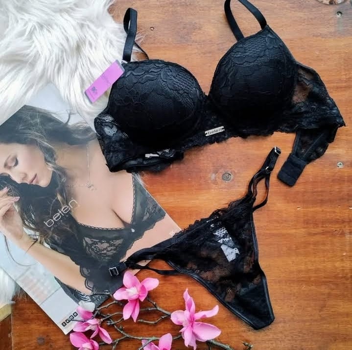 - CONJUNTO DE PUNTILLA.CORPIÑO PUSH UP SOFT CON DIJE PERSONALIZADO .COLALESS HILO DENTAL