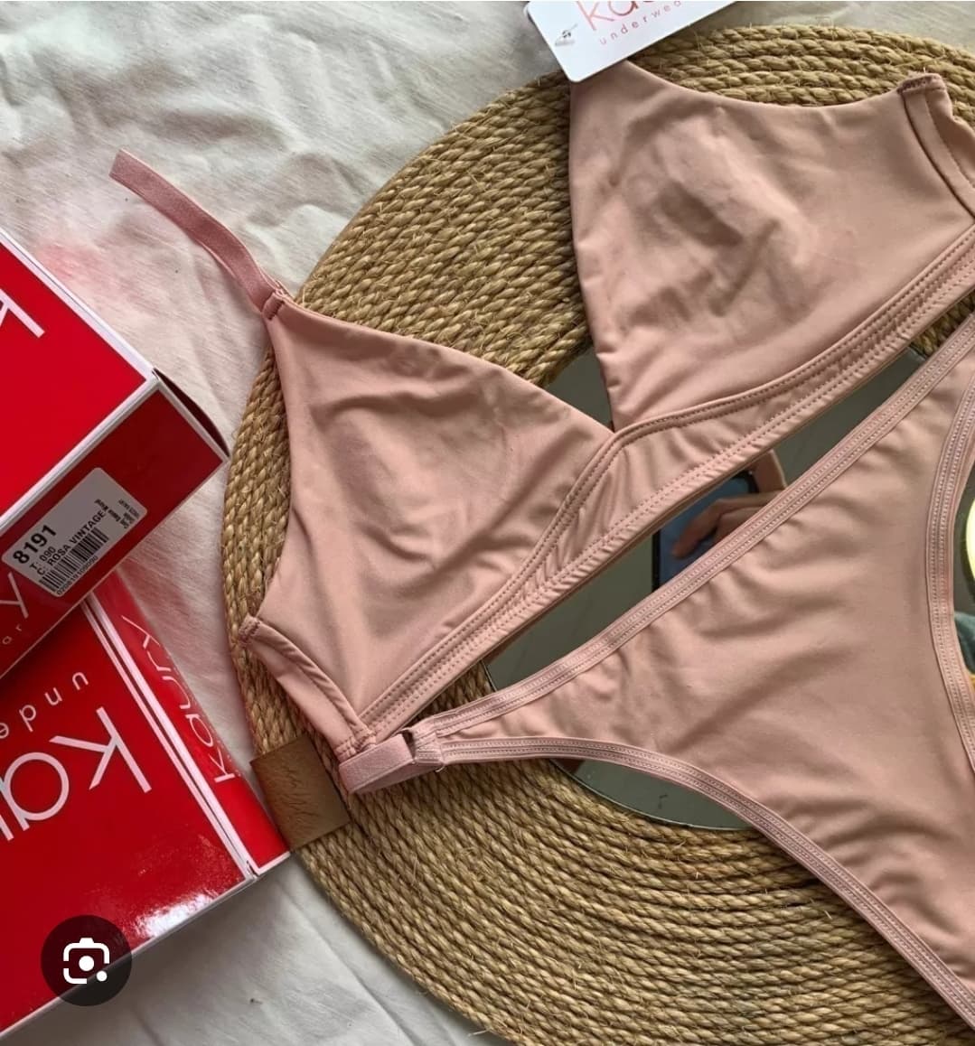 - Conjunto de microfibra. Corpiño triangulito premoldeado de tela doble y cola less regulable.