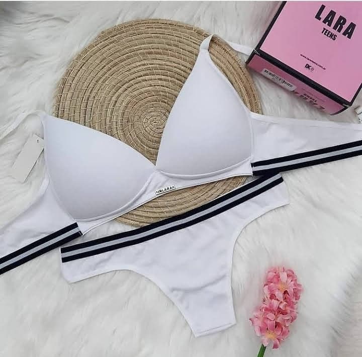 - Conjunto de Algodón y Lycra Liso con Dije Chapita y Elástico 2 Tonos. Corpiño Triangulo Soft sin Push Up. Colaless