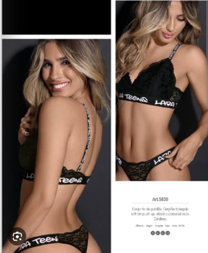 - Conjunto de puntilla. Corpiño taza soft sin push up. Colaless con elástico personalizado.