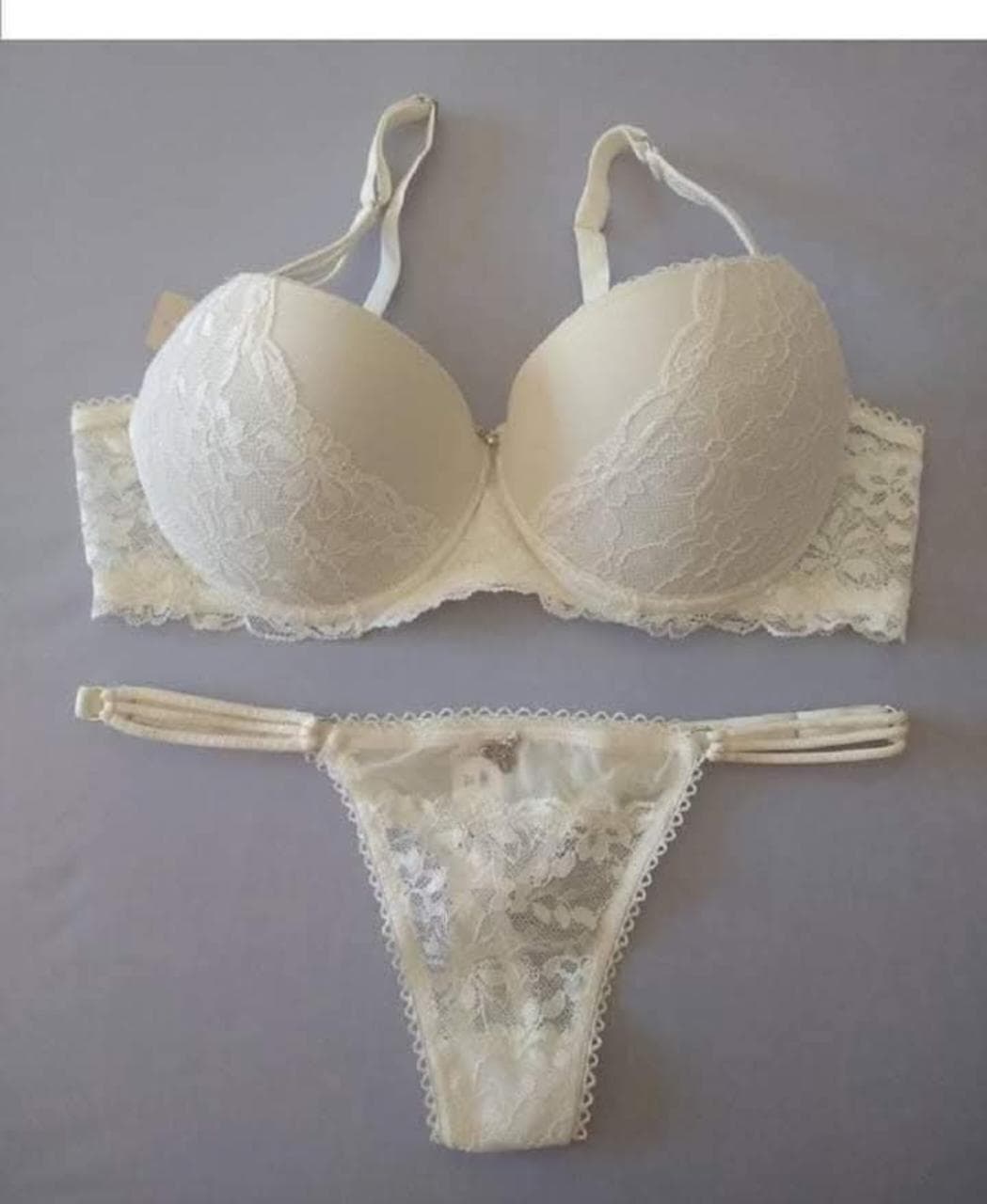 - Conjunto de puntilla y tul lycra con dije. Corpiño push up soft. Tangaless regulable