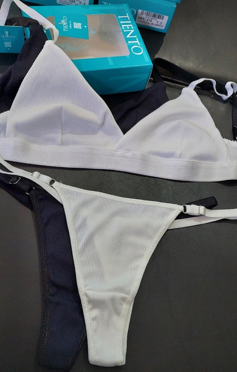 - Conjunto top cruzado con taza forrada y tanga less de morley