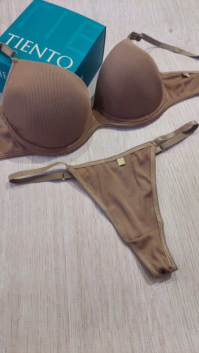- Conjunto de corpiño taza soft con Push Up y tanga less, confeccionado en morley elástizado y suave. El corpiño con taza soft y arco interno realza el busto de manera natural, aportando soporte y escote definido. La tanga less, de diseño clásico y tiro medio, completa el conjunto con un calce cómodo y moderno.