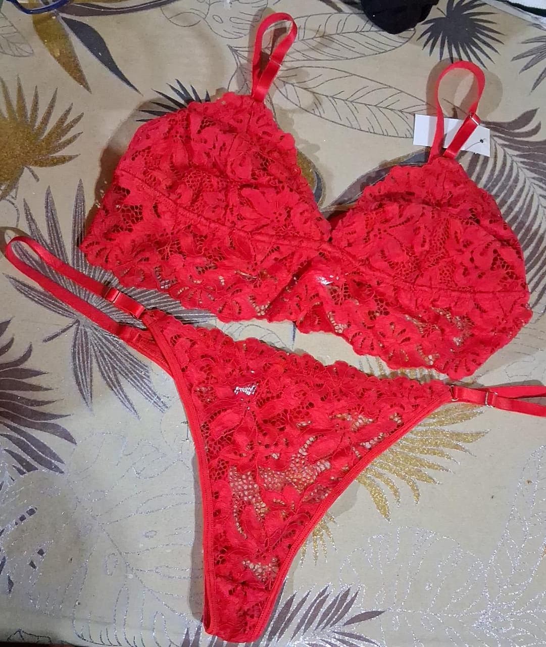 - Conj. Bralette y less reg puntilla con busto forrado.